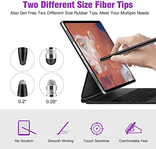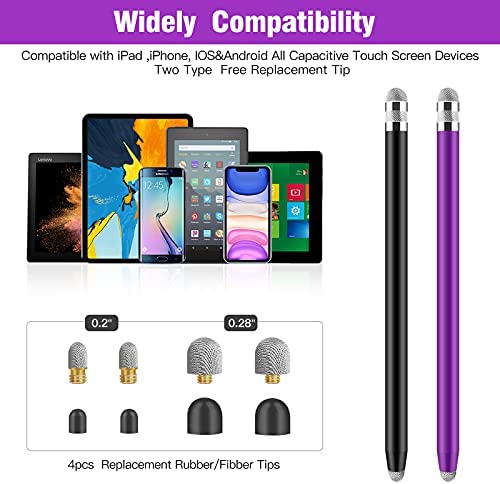 Stylus Pens for Touch Screens,Granabol Sensitivity Capacitive Stylus 4 in 1 Touch Screen Pen with 8 Extra Replaceable Tips for iPhone iPad Tablets All Universal Touch Devices(2Pcs) (Black+Purple)