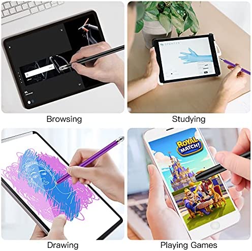 Introducing the Granabol Sensitivity Capacitive Stylus, the ultimate tool for writing and drawing on touch screens with precision. With our 4-in-1 design, this stylus can be used on all universal touch devices, including iPhones, iPads, and tablets, making it the perfect addition to your tech accessories. The stylus features eight extra replaceable tips, so you can keep using it for years to come. Its black and purple color combination adds a stylish touch, making it the perfect accessory for any occasion. The sensitivity capacitive feature ensures that every stroke is detected accurately, making it perfect for note-taking, sketching, and browsing the web with ease. So why settle for anything less? Add the Granabol Sensitivity Capacitive Stylus to your collection today and take your touch screen experience to the next level.,